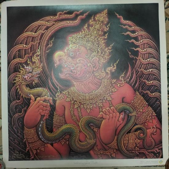 ภาพครุฑยุดนาคพร้อมลายเซ็นสด.**.เฉลิมชัย สีทองหายาก.***.มีคราบบางๆที่ริมภาพ ขนาด 69*69ซม. |