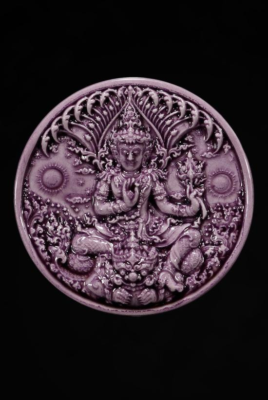 อภิปัญญามหาเศรษฐี พุทธศิลป์ในรูปแบบของ อ.เฉลิมชัย โฆษิตพิพัฒน์ กระเบื้องเคลือบสีม่วง พิมพ์ใหญ่ 5.5 ซม |