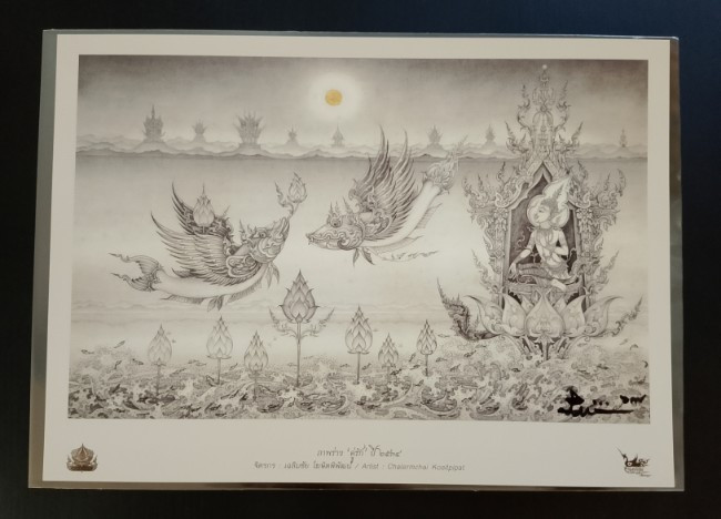 ภาพพิมพ์ " ภายในอุโบสถ วัดร่องขุ่น เชียงราย " ขนาด A4 พร้อมลายเซ็นสดท่าน อ.เฉลิมชัย โฆษิตพิพัฒน์ เข้ากรอบเป็นของขวัญของกำนัลในโอกาสต่างๆ |