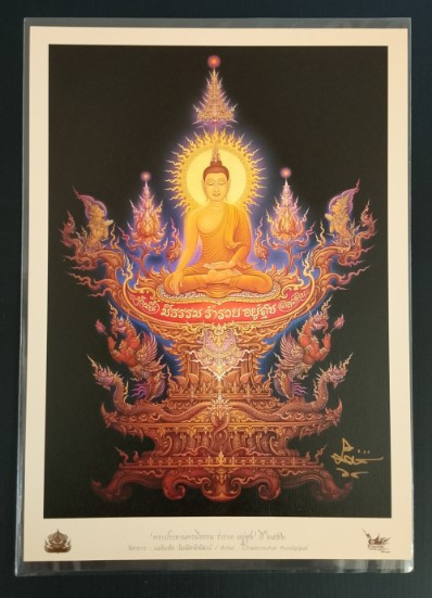 #1 ขออนุญาตท่านอ.เฉลิมชัย โฆษิตพิพัฒน์ นำเสนอ การ์ดที่ระลึกงานยกพระธาตุวัดร่องขุ่น (แบบมีลายเซ็น) 1 ใบ |