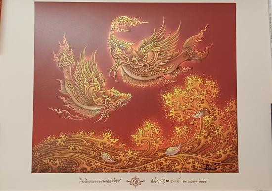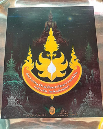 กราบขออนุญาตท่านอาจารย์ เพื่อนำเสนอภาพพิมพ์กระดาษ "พลังอำนาจครุฑยุดนาค" พร้อมลายเซ็นสดสีทอง |
