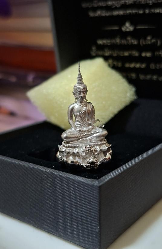 พระกริ่ง พระพุทธศิริชัยมงคล เนื้อเงิน หมายเลข 2974 ครบชุด มีกล่องเดิม พระอยู่ในซีลเดิม |