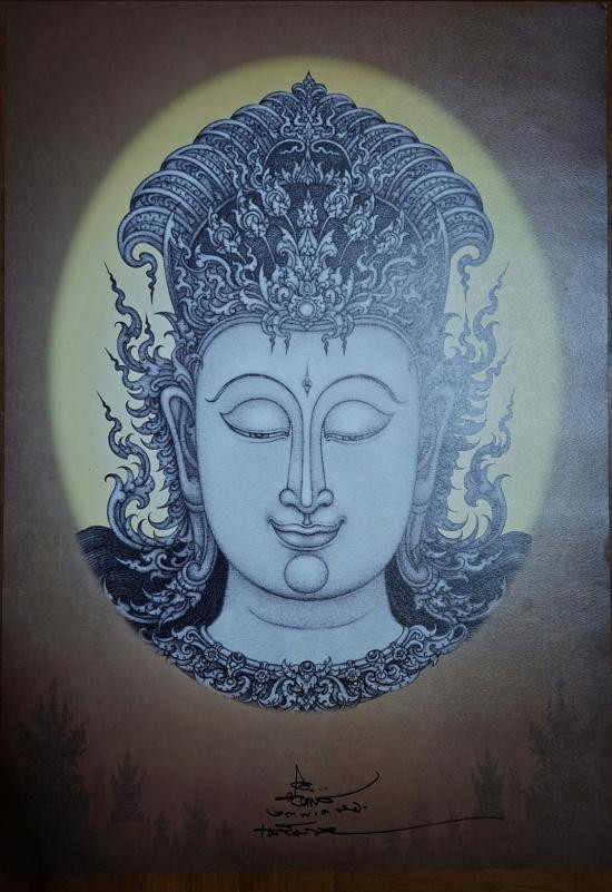 กราบขออนุญาตท่านอาจารย์ เพื่อนำเสนอภาพพิมพ์กระดาษ (หนังไก่) พระโพธิสัตว์ (แบบไม่มีขอบ) 1 ใน 800 |