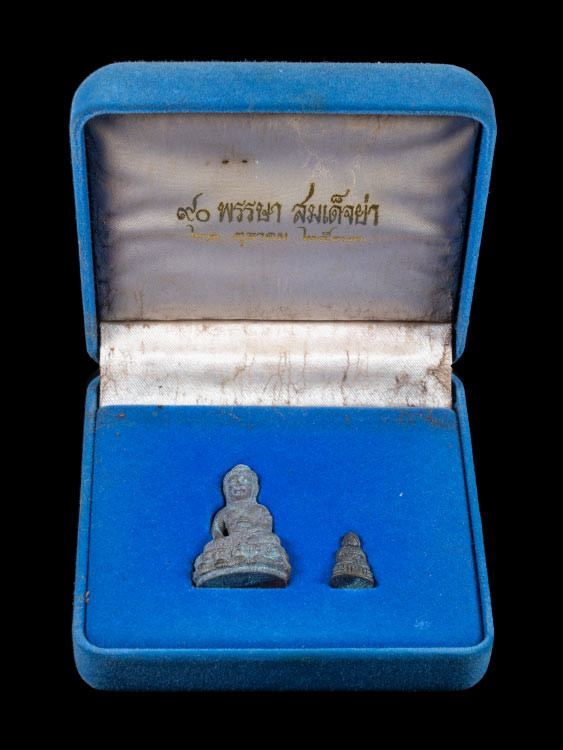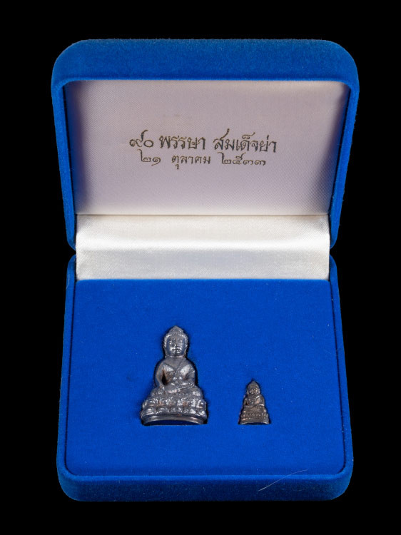 พระกริ่งมงคลบพิตร อนุสรณ์ครบรอบ90ปี อ.ย.ว. "เนื้อเงิน" มีกล่องใส่ให้ขณะขนส่ง |
