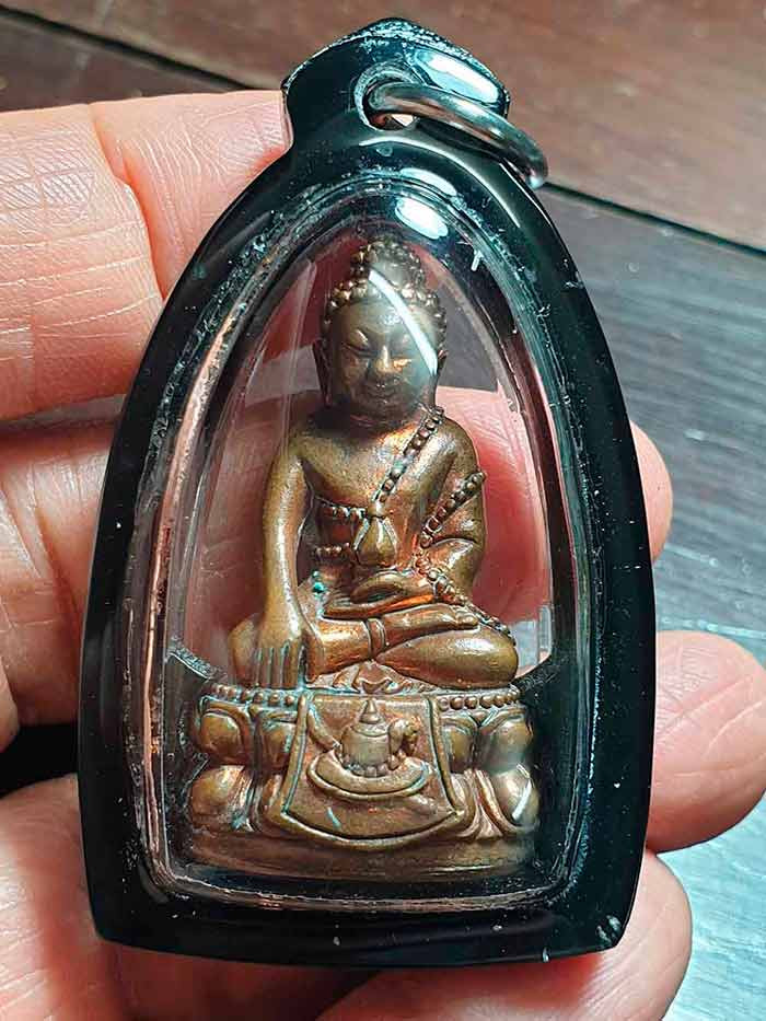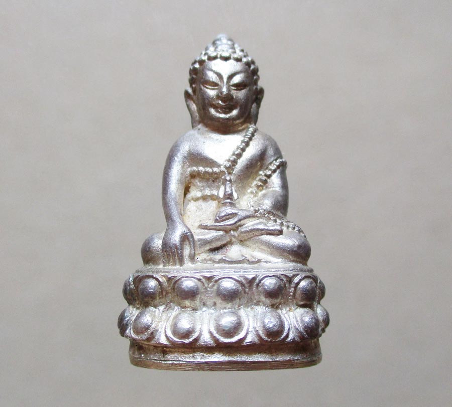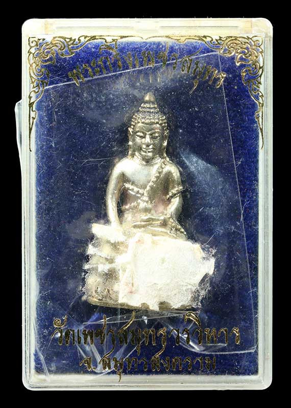 พระชัยวัฒน์ (เนื้อเงิน) ที่ระลึกงานสร้างพระอุโบสถ หลวงพ่อเงิน วัดท่อใหญ่ ชลบุรี ก้นจารมือ ปี2522 |