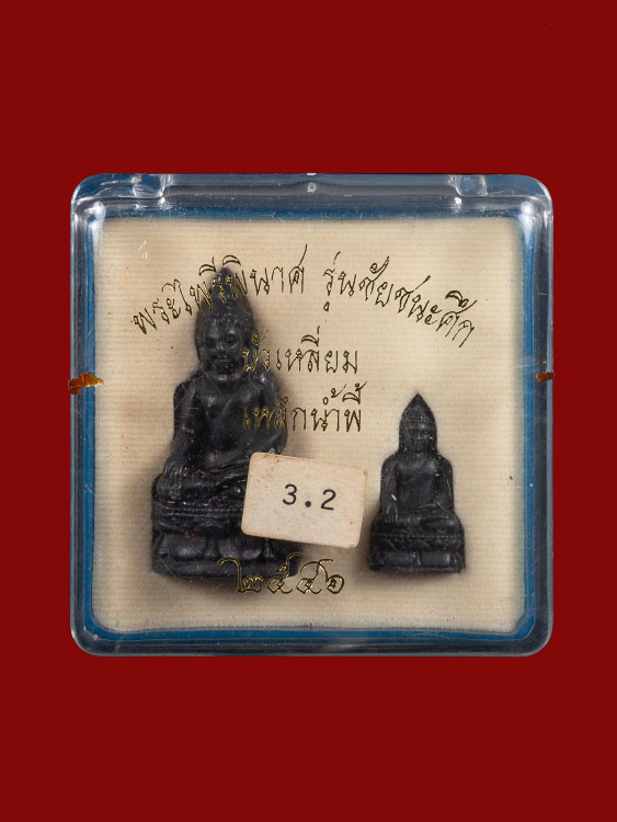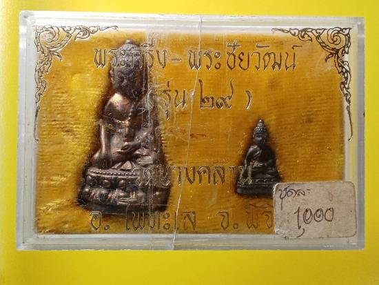 พระชัยวัฒน์ งานฉลองรูปเหมือน หลวงปู่แผ้ว ปวโร ชมรมพนักงานสอบสวนแห่งชาติ วัดรางหมัน ปี 2555 มีหมายเลข 1863 ใต้ฐาน สวยๆ กล่องเดิมๆ |