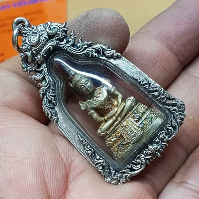 พระแก้วมรกต กรมสรรพสามิตจัดสร้าง วัดพระศรีรัตนศาสดาราม เนื้อเงิน(ผิวน้ำทองสวยๆ) ปี 2539 พร้อมเลี่ยมกรอบเงินแท้ 92.5% ขึ้น งานมือ กรอบหนา รมดำซาติน สวยๆ.. มีกล่อง |