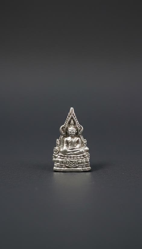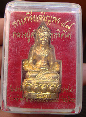 หลวงปู่จื่อกริ่งวัดจัดสร้างรุ่นแรกเนื้อเงิน กล่องไม้เดิม |