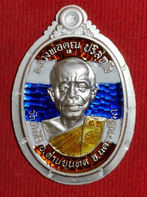 @@@ เหรียญมนต์พระกาฬปราบไพรี หลวงพ่อคูณ เนื้อเงินลงยาสีแดงหมายเลข 824 ปี 2557 |