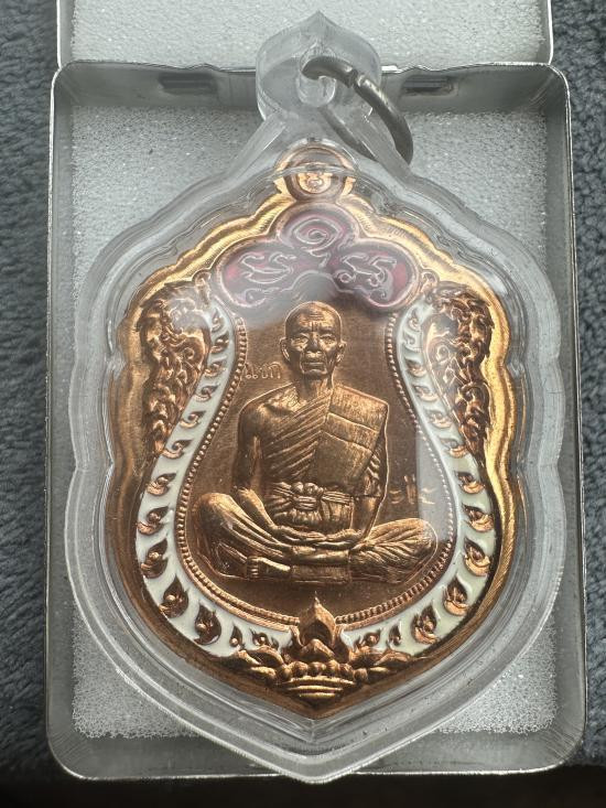 วัดใจ เหรียญหลวงพ่อคูณ วัดบ้านไร่ รุ่นเมตตา พิมพ์ครึ่งองค์ห่มเฉียง ปี 2555 เนื้อทองฝาบาตร สภาพสวย พิเศษมีรอยจารหน้า-หลัง หมายเลข 340 มีกล่องเดิมๆ |