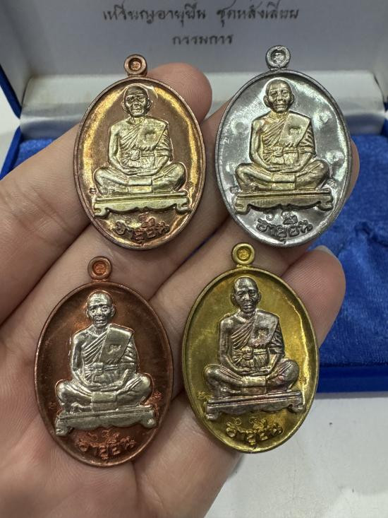 เหรียญอายุยืน รุ่นพิเศษ ปี2553 ชุดหลังเรียบ กรรมการ 1 ชุด มี 4 เหรียญ มีกล่อง |