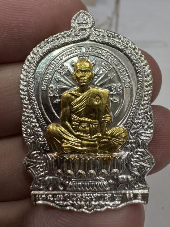 เหรียญนั่งพานชนะมาร2 (วัดสร้าง) ปี2557 เนื้อเงิน หน้ากากทองคำ มีกล่อง |