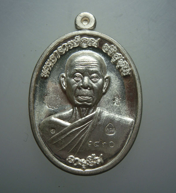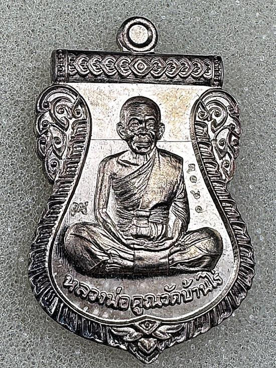 หลวงปู่คูณ ปริสุทโธ วัดบ้านไร่ อ.ด่านขุนทด จ.นครราชสีมา รุ่นเมตตา ห่มเฉียง เนื้ออัลปาก้า พร้อมเลี่ยมเงิน ปี 2555 |