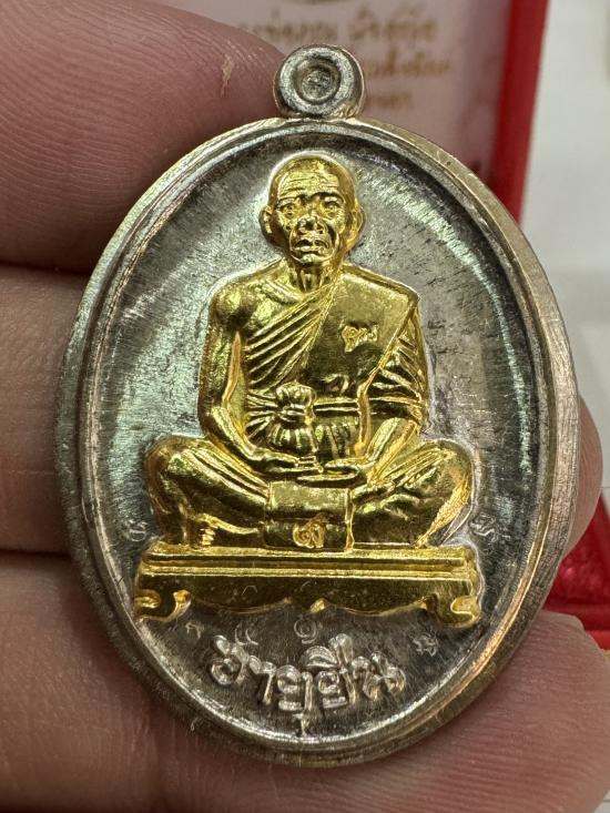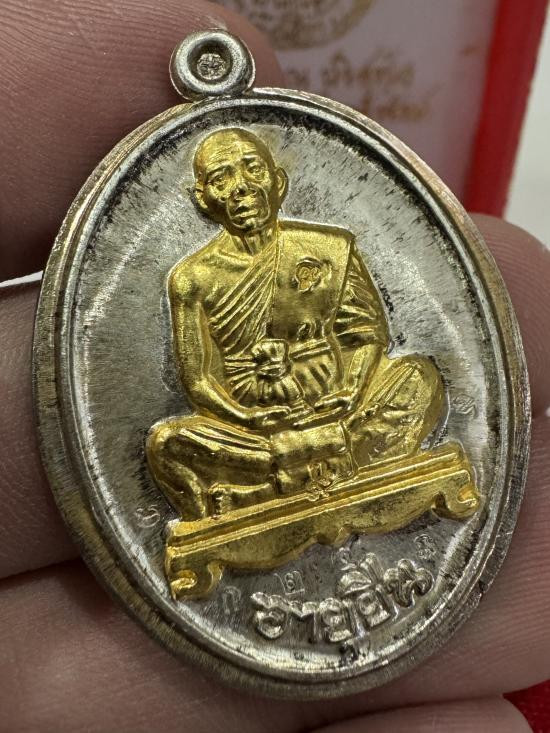 เหรียญอายุยืน รุ่นพิเศษ ปี2553 เนื้อเงิน ไม่ตัดปีก หน้ากากทองคำ no.51 มีกล่อง |