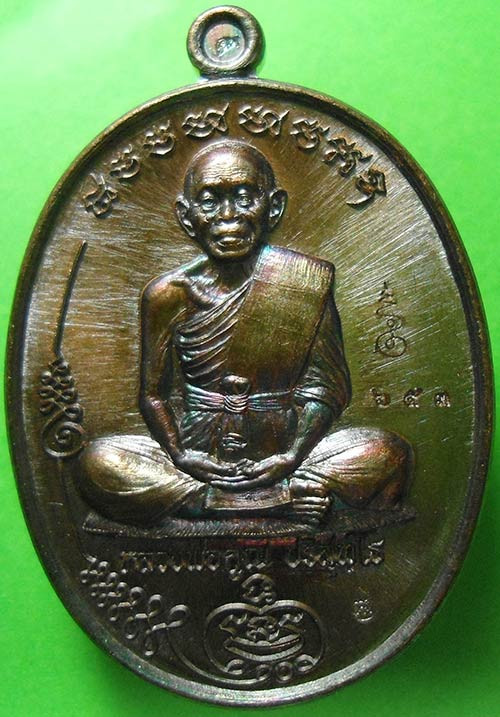 เหรียญหลวงพ่อคูณ รุ่นเจริญพรล่าง ๙๑ วัดแจ้งนอก เนื้อทองแดงลงยาเขียว เลข 213 |