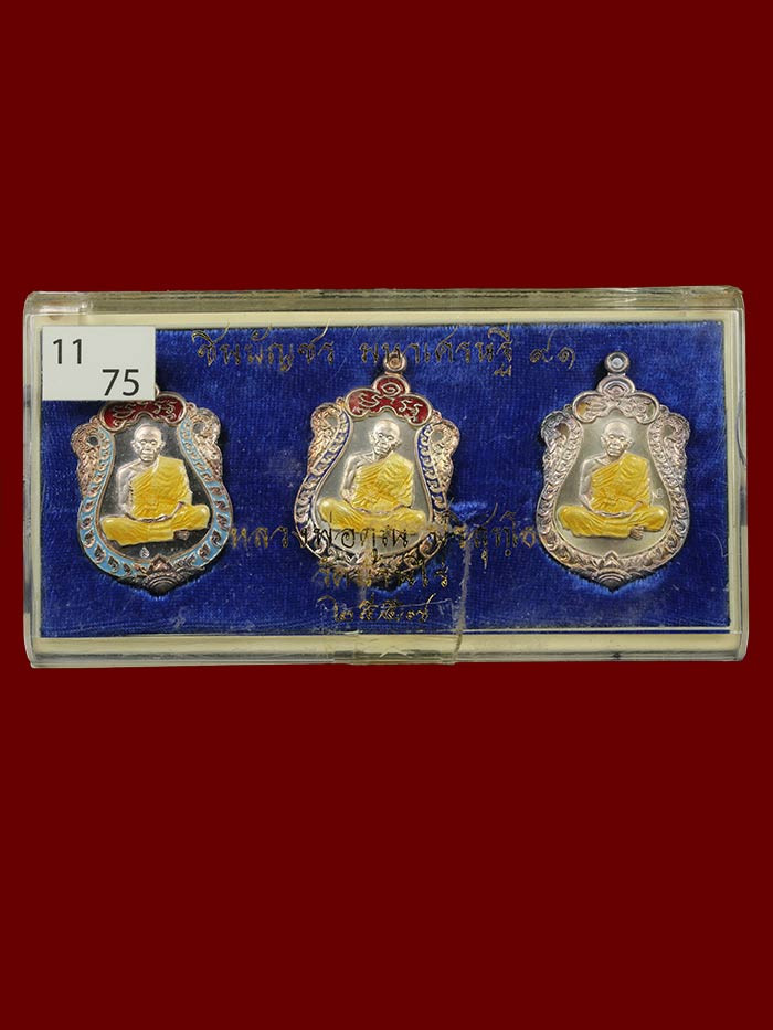 เหรียญปะฉลุ 3 ชิ้นประกอบ หลวงพ่อคูณ วัดบ้านไร่ รุ่นไตรมาส 57 (ไตรสรณะ) เนื้อเงิน ลงยา 3 สี (น้ำหนักเหรียญ 18.2 กรัม) แยกชุดกรรมการ สวย No.50 จัดสร้าง 99 ชุด หายาก |