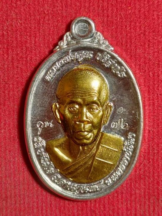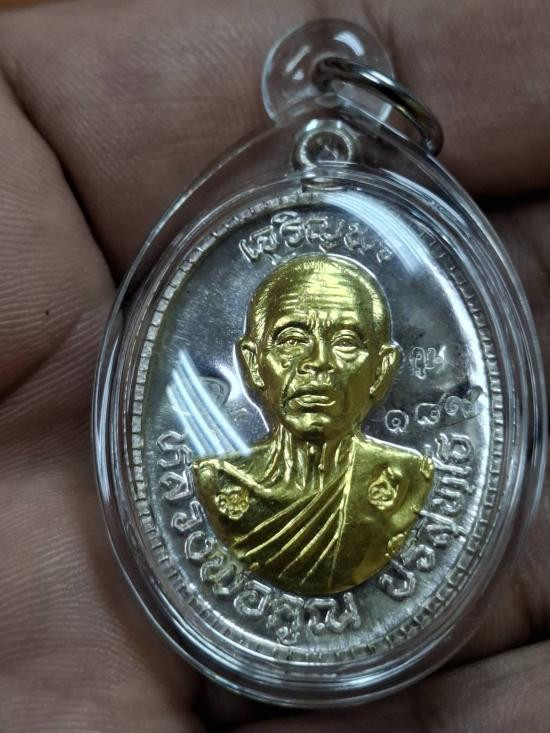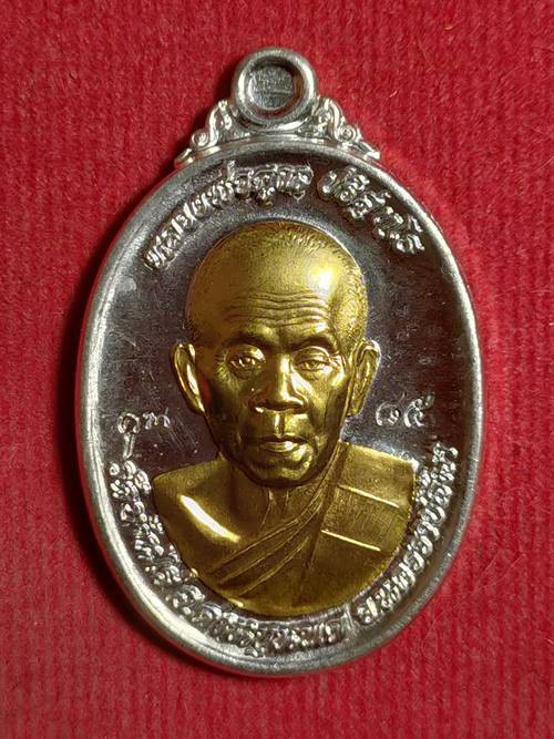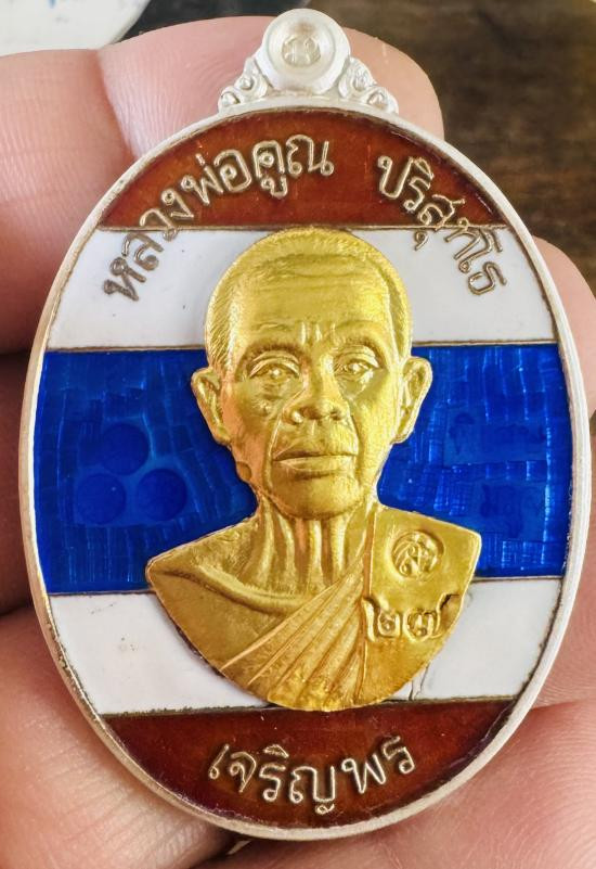 เหรียญจัมโบ้ หลวงพ่อคูณ ปริสุทฺโธ รุ่นเจริญพรล่าง91 เนื้อเงินลงยาลายธงชาติหน้าทองคำ หมายเลข27 (เหรียญเงินหน้าทองคำหนัก37.9กรัม มีกลองครับ) |