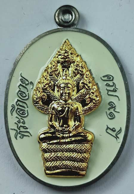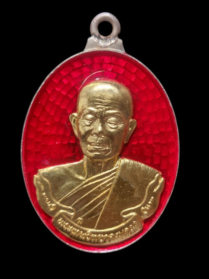 เหรียญปาดตาลครึ่งองค์ หลวงพ่อคูณ รุ่นพุทธคูณสยามมหาลาภ วัดใหม่อัมพวัน เนื้อเงินลงยาหน้ากากทอง ไม่ตัดปีก หลังเรียบมีจาร หมายเลข50 |