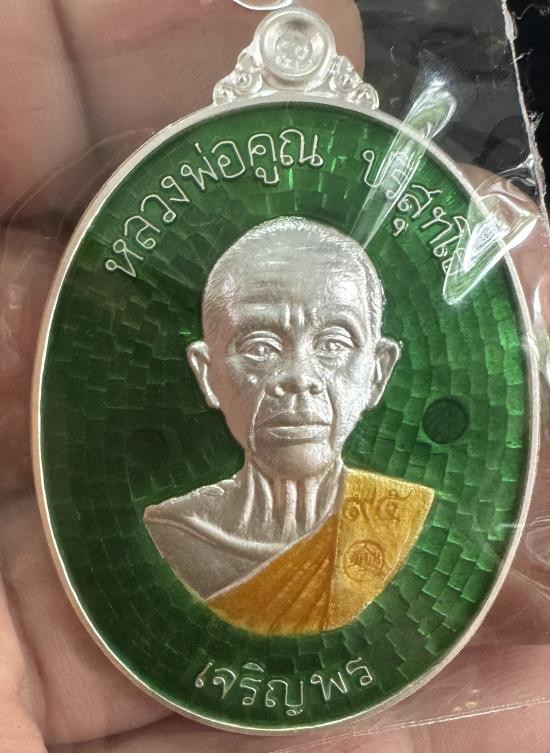 เหรียญ หลวงพ่อคูณ ปริสุทฺโธ เหรียญจัมโบ้รุ่นเจริญพรล่าง91 เนื้อเงินลงยาสีเขียว หมายเลข113 มีกล่องครับ(น้ำหนักเงินหนัก36.8กรัม) |