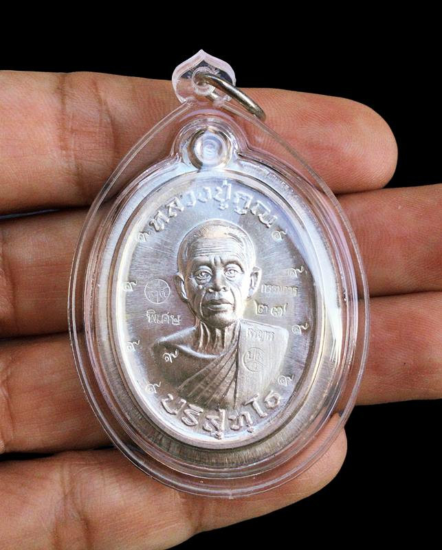 เหรียญหน้าศรีนคร รุ่นมหาลาภ ปี2557 เนื้อเงิน โค้ด๙รอบ หลังแบบ no.26 มีกล่อง |