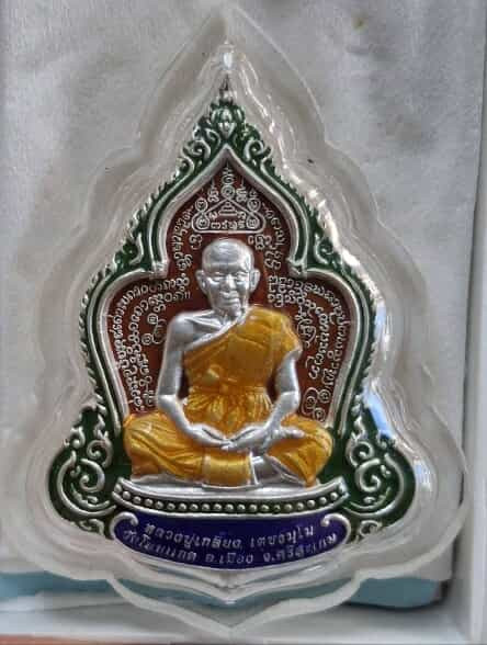 เคาะเดียว 100 เเหรียญเสมามหาโภคทรัพย์ 2560 หลวงปู่หมุน เนื้อนวะหน้ากากเงิน ขอบประกบเงินลงยา 3 สี หมายเลข ๖๘๒ พร้อมกล่องเดิม |