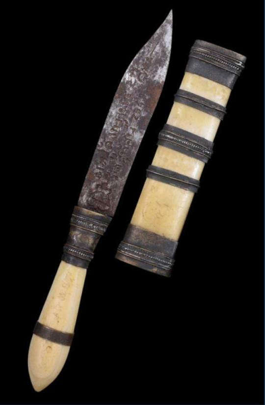 มีดหมอเทพศาตราเนื้อโลหะ ด้ามฝักงา รุ่นพระเจ้าห้าพระองค์ ปี 2543 พร้อมรอยจารเต็มฝัก หมายเลข 377 พร้อมบัตรรับรองครับ |