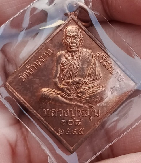 128.........รูปหล่อเบ้าทุบ เนื้อโลหะผสม หลวงปู่หมุน วัดบ้านจาน รุ่นฉลองซื้อที่ดิน ปี 2561 สวยเดิมกล่องเดิม |
