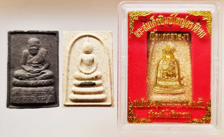<< วัดใจ >> พระสมเด็จหลวงปู่ทวด รุ่นโพธิสัตโต ( พิมพ์ใหญ่ ) + พระสมเด็จฝังตะกรุด โรยพระธาตุ หลังสมเด็จโต วัดหลักเมือง + พระสมเด็จวัดระฆัง แตกลายงา รุ่นM16 ปี46 พิมพ์ใหญ่ทรงนิยม เกศทะลุซุ้ม รวม 3 องค์ |