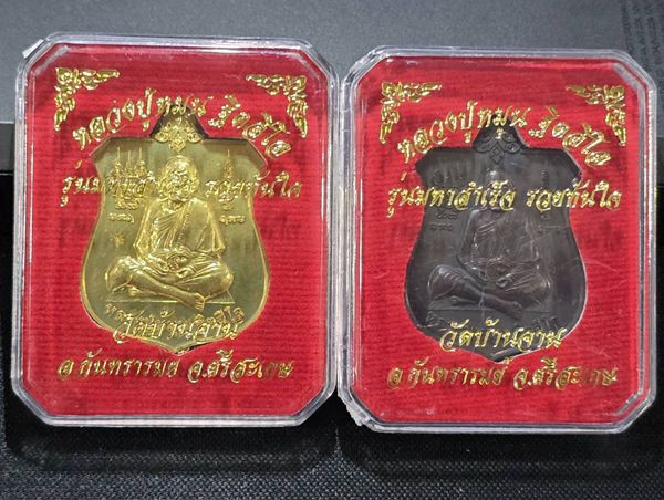2 องค์ . สภาพสวย . เท่าไหร่เท่านั้น ... เหรียญมหาสำเร็จ หลวงปู่หมุน หลังพระพิฆเนศ เนื้อทองเหลือง + เนื้อทองแดงรมดำ วัดบ้านจาน ปี 60 + กล่องเดิม |
