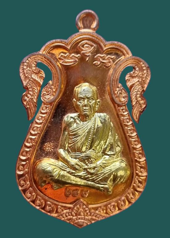เหรียญเสมาฉลุหน้ากากทองฝาบาตรแจกทานในพิธีปี๖๑ ตอกโค๊ตตอกหมายเลข 852 วัดบ้านจานจังหวัดศรีสะเกษ หลวงปู่หมุน ฐิตสีโล จัดสร้างจำนวน 2,000 เหรียญ (2) |