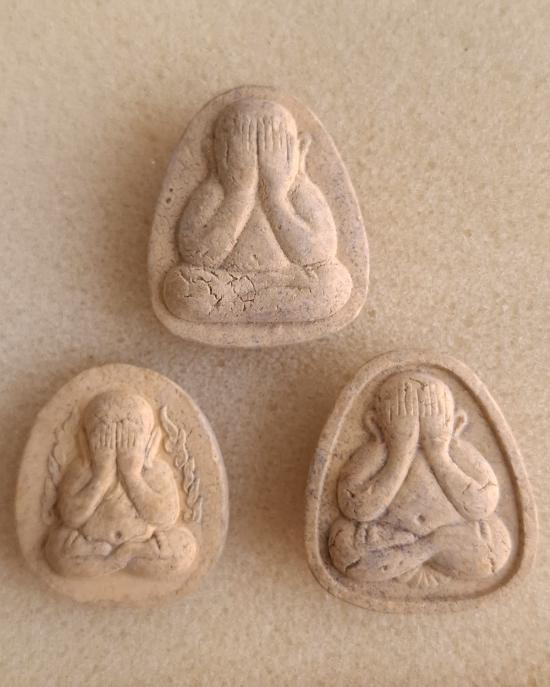วัดใจ@เบี้ยแก้หล่อประกบ3ชิ้น หลวงปู่หมุน ฐิตสีโล โดยหลวงปู่มหาศิลา สิริจันโท .ปลุกเสก ยังไม่แกะซีล องค์ที่ 5 |
