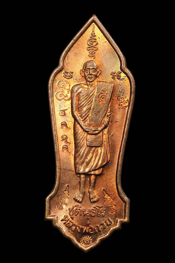 พระสวย.. เหรียญอาร์มหลวงพ่อกวย หลังหนุมานเชิญธง รุ่นปี 2542 เนื้อทองแดง |