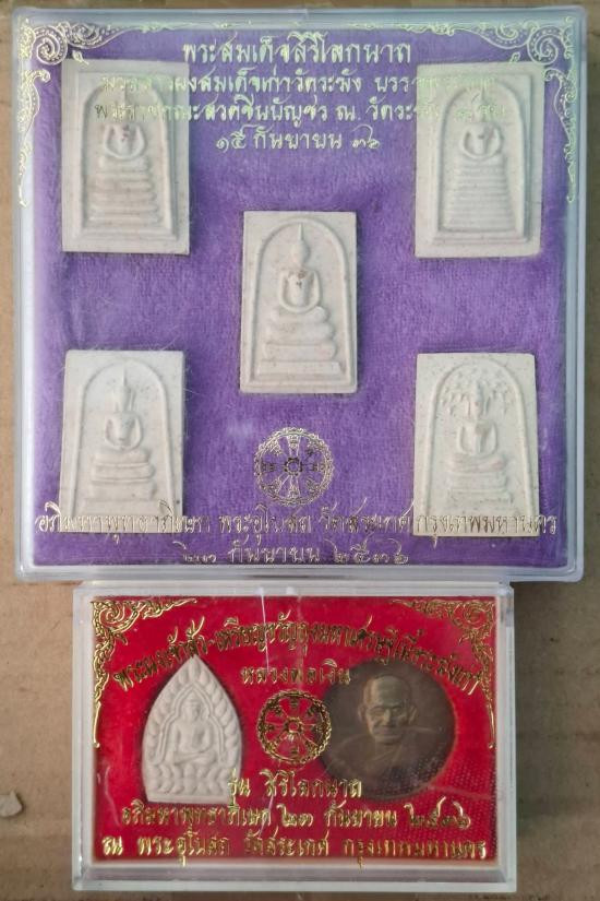 "วัดใจ" ชุด 3องค์ เหรียญใบเสมา ชินบัญชร เนื้อทองระฆังลงยา หลวงปู่เกลี้ยง วัดโนนแกด สภาพสวยพร้อมกล่องเดิม หมายเลข 769 ครับ |