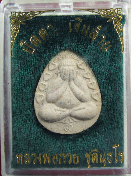 พระปิดตาเงินล้าน หลวงพ่อกวย หลวงปู่หมุนปลุกเสก ปี 2543 เลี่ยมกรอบพร้อมใช้ครับ |