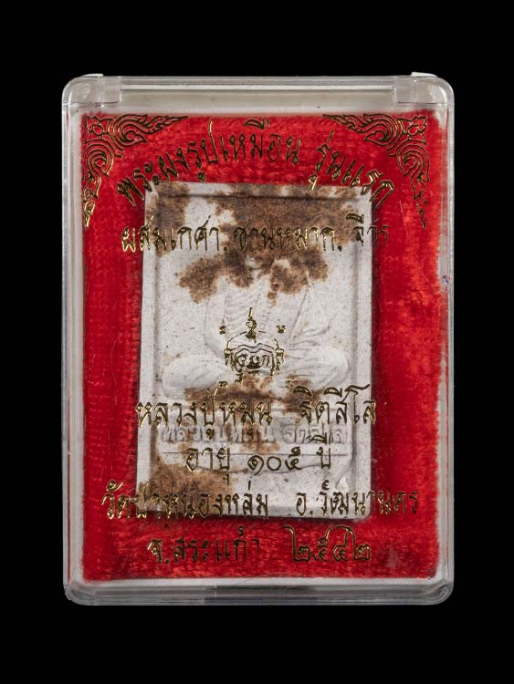 พระผงนั่งตั่ง หลวงปู่หมุน ฐีตสีโล วัดป่าหนองหล่ม สระแก้ว 2542 พระมีการชำรุด ราคาไม่แรงครับ |
