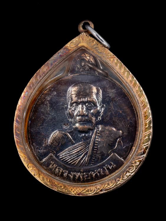 เหรียญหลวงปู่หมุน วัดบ้านจาน รุ่นมนต์พระกาฬ เนื้อทองแดง เลื่ยมทอง พร้อมบัตร g-pra |