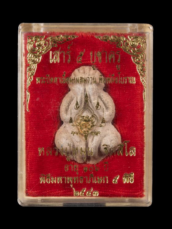 พระปิดตาชมภูนุช หลวงปู่หมุน ฐิตสีโลเสก "รุ่นจักรพรรดิ์มหาพุทธมงคลชัย ปี2542" เนื้อจตุธาตุ อุดผงผสมพระธาตุเสด็จ แช่น้ำมนต์นาน 3 เดือน |