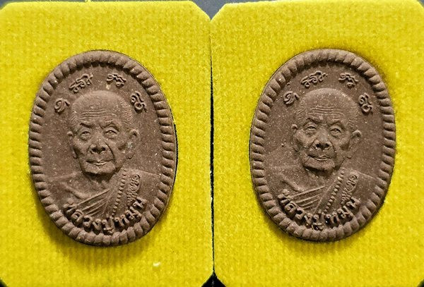 ชุดสุดท้าย . (2 องค์) . สภาพสวย . เท่าไหร่ เท่านั้น ... พระผงดวงเศรษฐี (บล็อกแรก) หลวงปู่หมุน เนื้อผงน้ำพี้ ปี 2556 + กล่องเดิม |