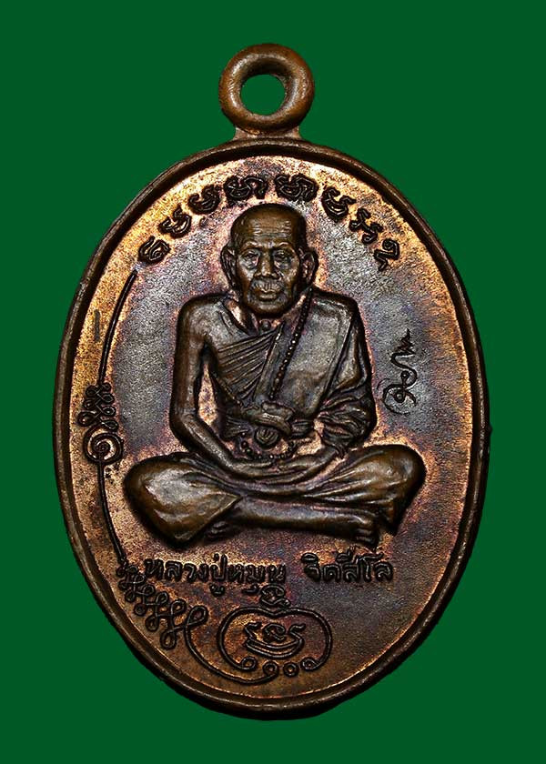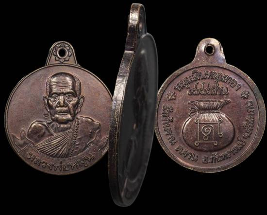 เหรียญมนต์พระกาฬ หลวงปู่หมุน วัดบ้านจาน จ.ศรีสะเกษ รุ่นแรก พิมพ์เต็มองค์ ปี 2543 เนื้อทองแดง ตอกโค๊ด |
