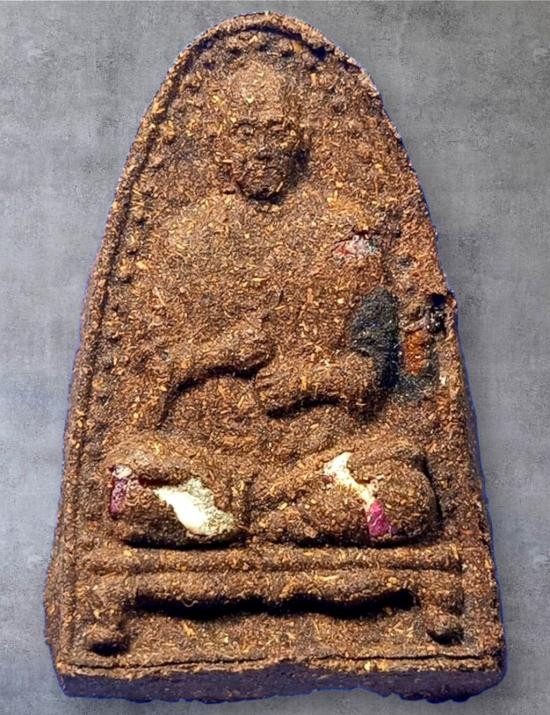 พระสมเด็จรุ่นแรก หลวงปู่หมุน ฐิตสีโล พิธีเจริญลาภ ปี 2542 หลังปั๊มยันต์แดง เนื้อว่านน108 ผสมเกศา จีวร ชานหมาก |