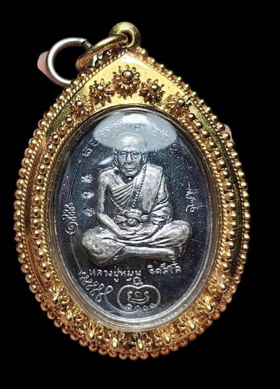 มวลสารติดรูปสร้างจากมวลสารของหลวงปู่หมุน ที่ท่านปลุกเสกใน(พิธีรวยทันใจปี43) สร้างโดย"พระอาจารย์หมัน" เจ้าอาวาสวัดช่องกุ่ม จัดสร้างขึ้นในปี2553 |