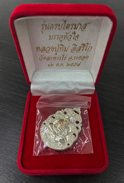 เจริญพรบน ที่ระลึกพิธีนำฤกษ์หัวใจ ปี 57 หลวงปู่ทิม วัดละหารไร่ จ.ระยอง เนื้อเงินลงยา พร้อมกล่องเดิม |