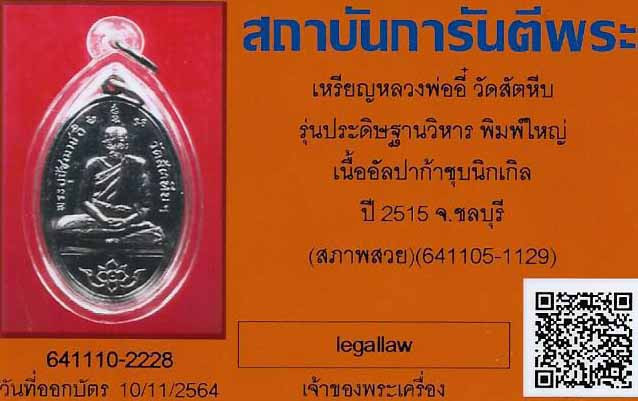 เหรียญหลวงพ่ออี๋ หลวงปู่ทิมปลุกเสก ปี ๑๕ สภาพสวยกริ๊บแชมป์ออฟเดอะแชมป์จนบัตรรับรองพระแท้ก็ยังระบุสภาพสวย*284 |
