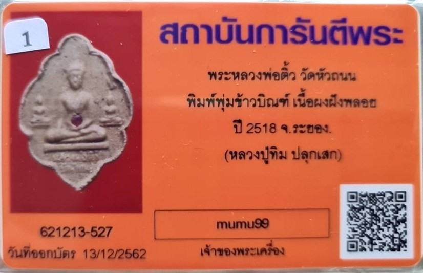 300.- สมเด็จนั่งพาน หลวงพ่อติ้ว วัดหัวถนน จ.ชลบุรี ปี 2519 ห ลวงปู่ทิม วัดละหารไร่ ปลุกเสก |