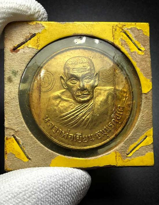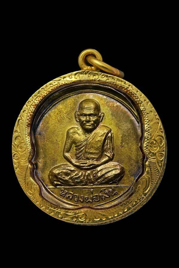 เหรียญขวัญถุง หลวงพ่อเงิน วัดบางคลาน เนื้อทองเหลืองกระไหล่ทอง ปี 2515 เลี่ยมทองหนาๆ |