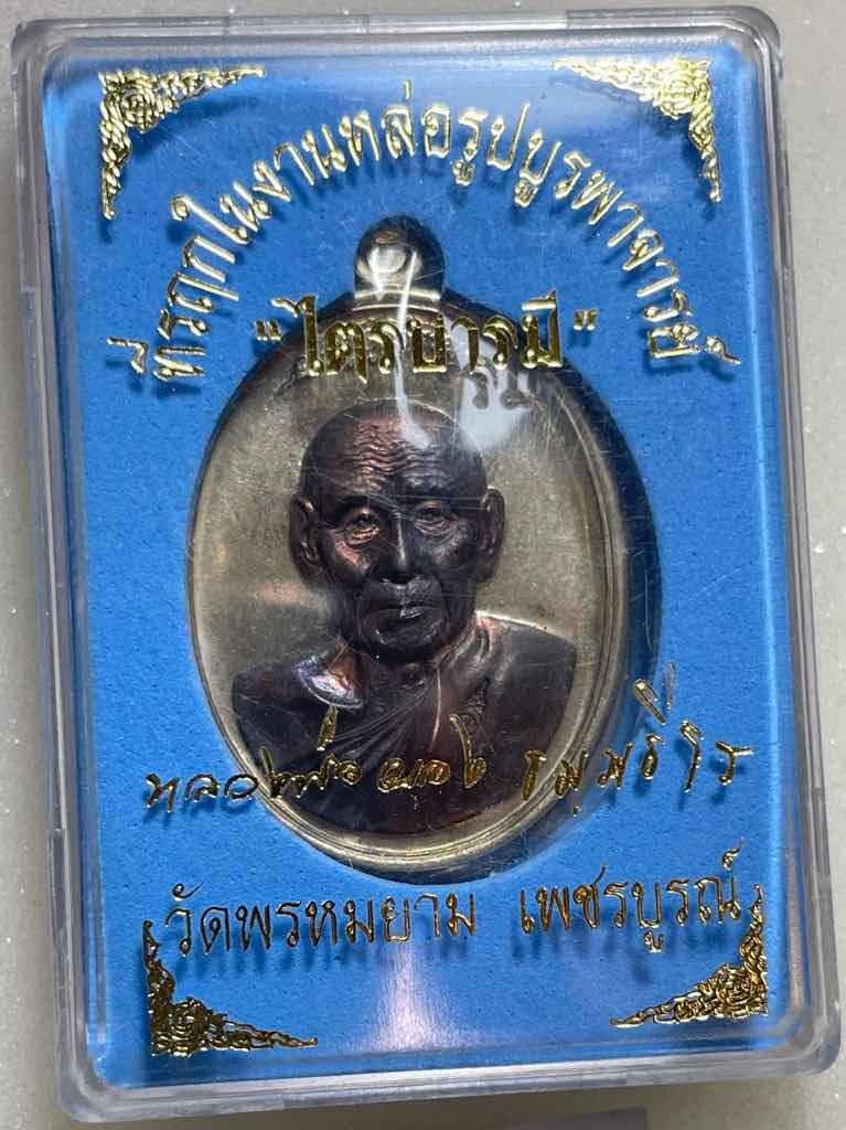 300.- ems เหรียญ ไตรบารมี ปี 53 หลวงพ่อผอง วัดพรหมยาม อ.เชียรบุรี จ.เพชรบูรณ์ เนื้ออัลปาก้าหน้ากากนวะโลหะ เลขสวย no.63(รวมผล9) สภาพสวยเดิมๆคากล่อง จมูกโด่งๆ ท่านเป็นศิษย์หลวงพ่อทบ |