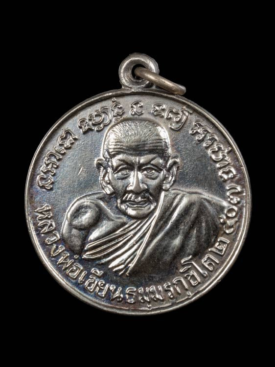 เหรียญหลวงพ่อเงิน วัดท้ายน้ำ พิมพ์ขี่ช้างรุ่นกำแพงเงิน ปี 2525 |