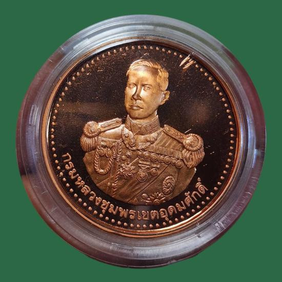 เหรียญทองแดงขัดเงา กรมหลวงชุมพร หลวงพ่อเงิน พ.ศ.2537 สภาพสวยตามรูป |