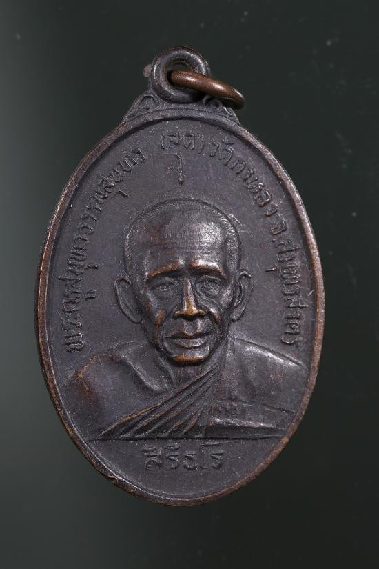 เหรียญหลวงพ่อสุด รุ่นสุดท้าย เนื้อทองแดง ที่ระลึกสร้างวิหาร วัดกาหลง สมุทรสาคร ปี 2526 |