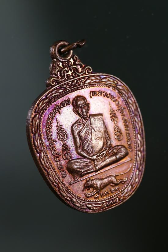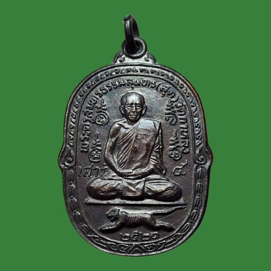 เหรียญเสือเผ่น หลวงพ่อสุด วัดกาหลง เสาร์๕ เนื้อทองแดง ปี2523 |